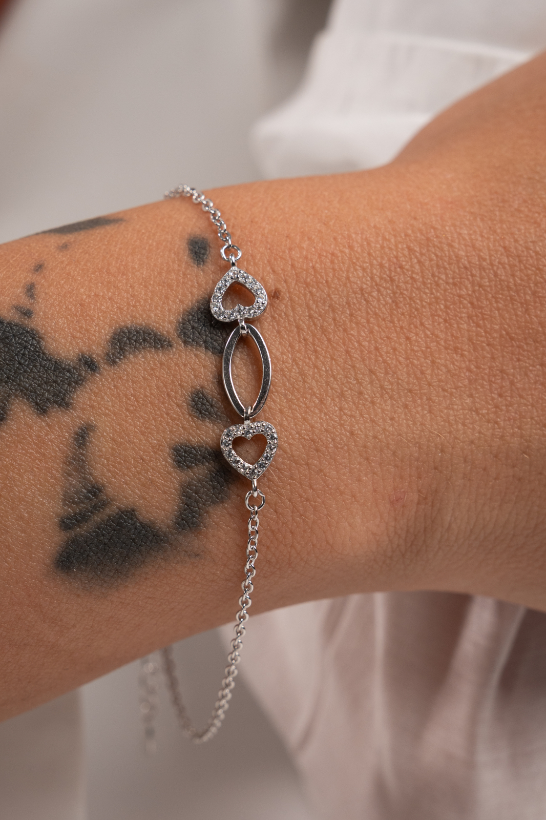 Descoperă farmecul subtil al eleganței cu brățara Heart Beat o piesă rafinată, realizată din argint 925 rodiat pentru un plus de strălucire și durabilitate. Designul delicat cu inimi interconectate simbolizează legături profunde și sincere, iar pietrele fine, perfect așezate, adaugă un strop de lumină și rafinament fiecărui gest. Se poate purta cu setul colier și cercei Heart Beat.