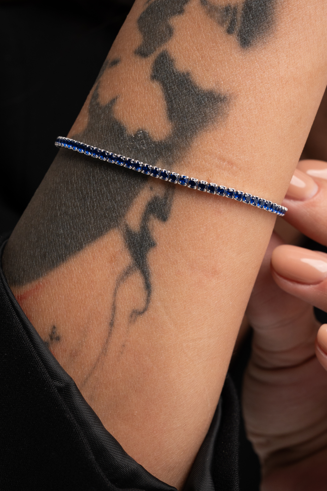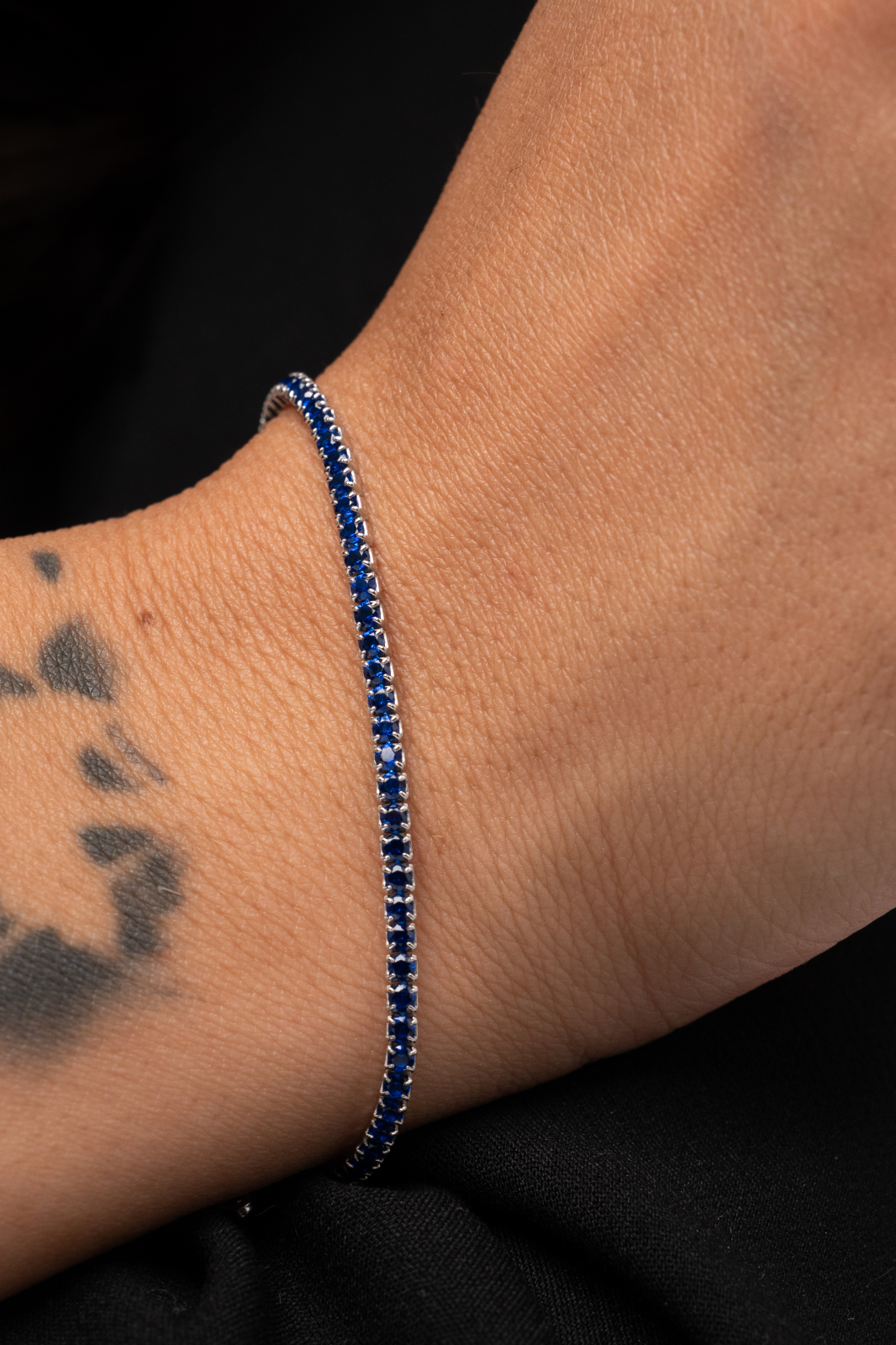 Descoperă rafinamentul atemporal al unei brățări tennis realizate din argint 925 placat cu rodiu, decorată cu zirconii albastre ce amintesc de profunzimea oceanului sau de cerul nopții. Fiecare piatră este montată cu grijă pentru a oferi o strălucire intensă, păstrând totodată eleganța liniară specifică designului tennis.