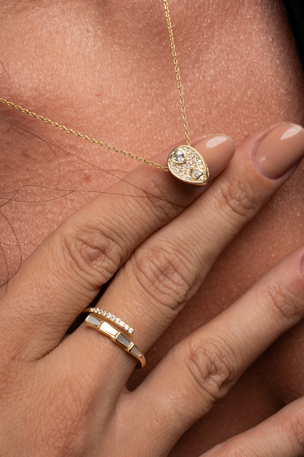 Adaugă o notă de eleganță modernă colecției tale de bijuterii cu acest colier din argint 925 placat cu aur de 14 karate, evidențiat de un pandant cu formă asimetrică, cu un design minimalist, dar plin de personalitate. Este o piesă versatilă, ideală atât pentru ținutele de zi cu zi, cât și pentru ocazii speciale. Colierul este realizat din argint de înaltă calitate și acoperit cu un strat fin de aur de 14K, oferind un luciu de durată și un stil atemporal.