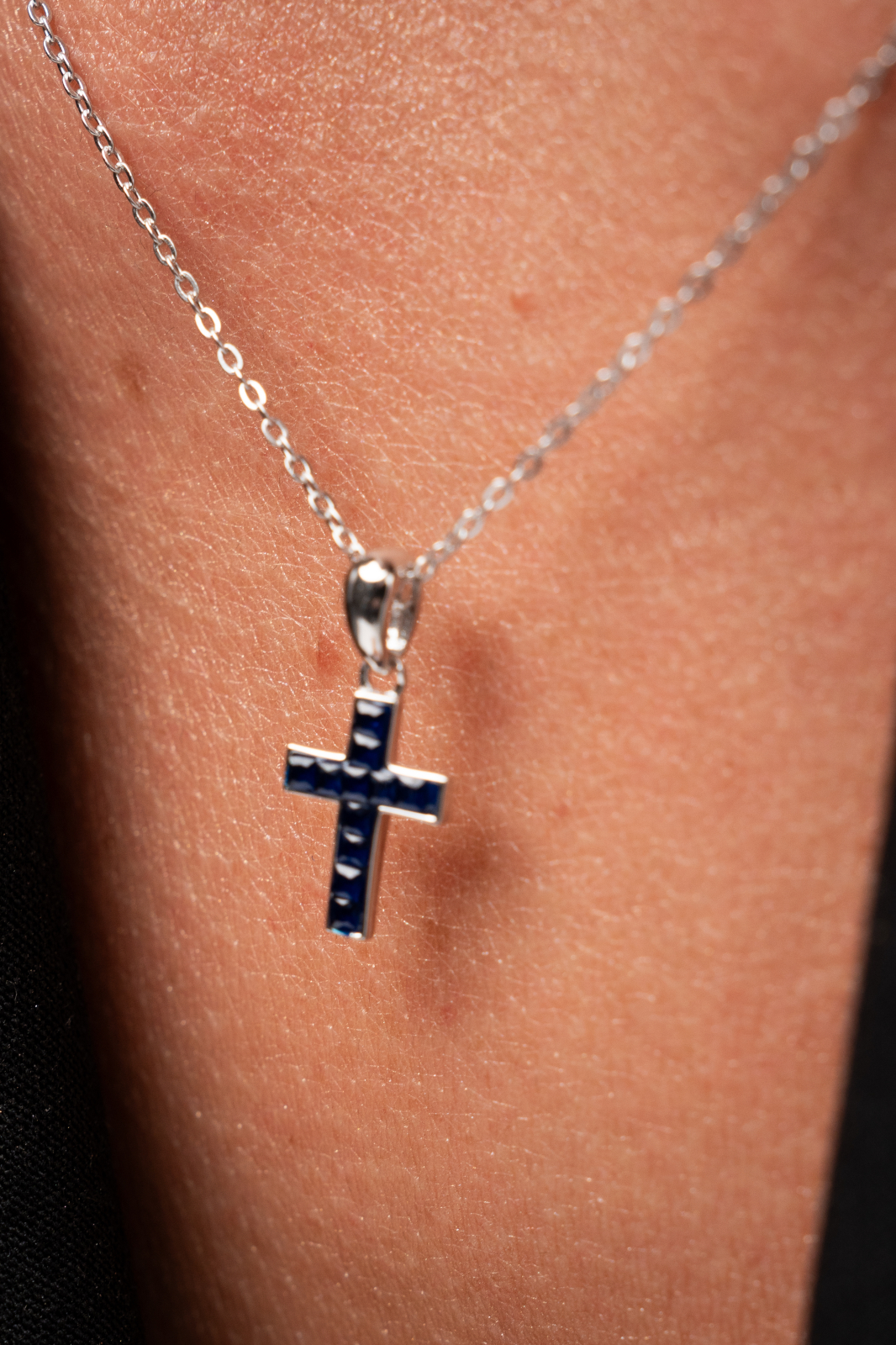 O bijuterie care îmbină eleganța argintului rodiat cu forța simbolică a unei cruci negre, acest colier este expresia unui stil aparte: profund, discret și cu o notă de mister.