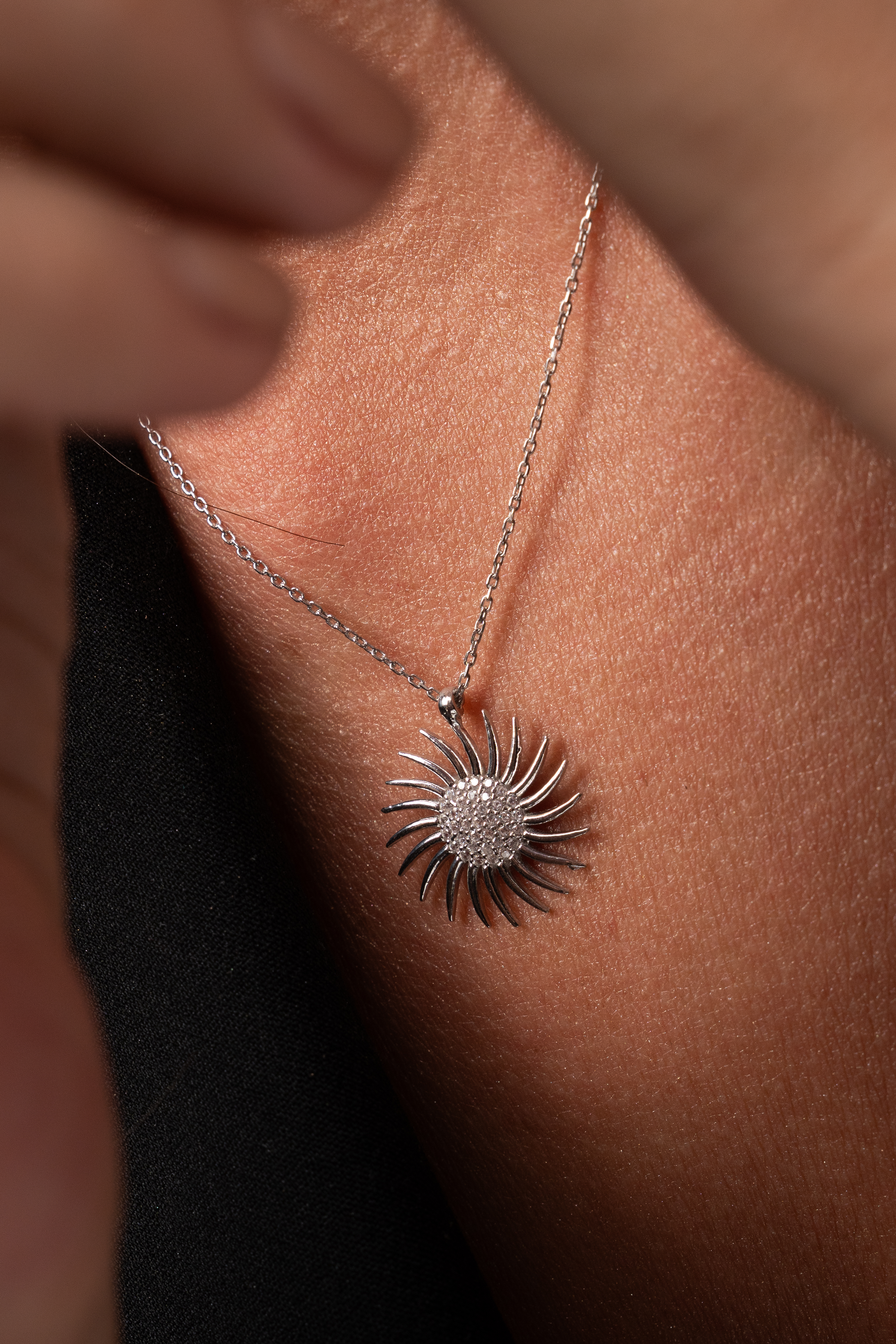 Fiecare rază a pandantivului este o promisiune de căldură și putere interioară, iar purtarea lui devine un gest simplu, dar profund, de a-ți aminti cine ești: lumină.