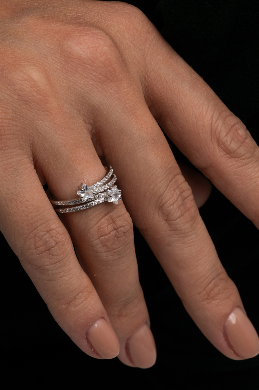 Realizat din argint 925 rodiat, acest inel reglabil se remarcă prin detalii delicate sub formă de stele, care captează lumina subtil la fiecare mișcare.