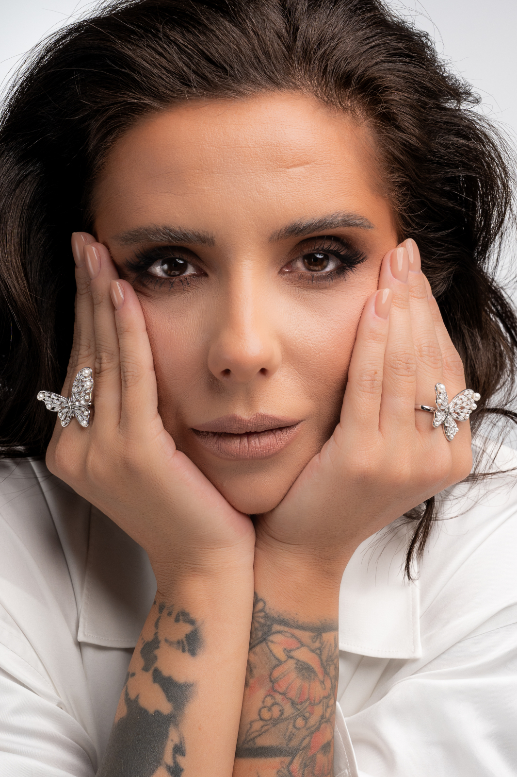 Inel reglabil din argint 925 rodiat, cu design delicat de aripi de fluture și inserții strălucitoare de zirconiu. Simbol al libertății și al transformării, această bijuterie adaugă eleganță și rafinament oricărei ținute.