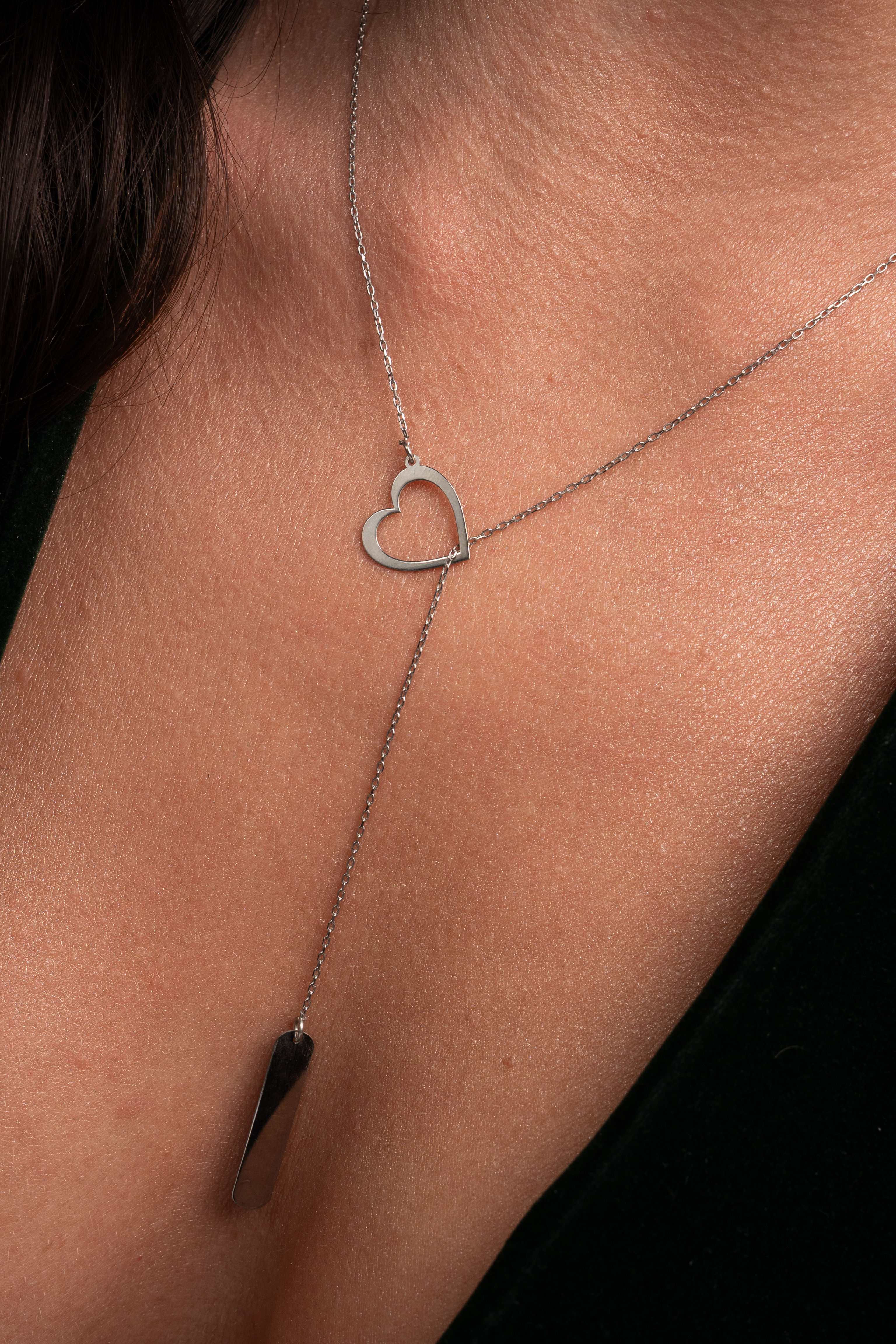 Un colier delicat, fără închidere, care se așază lin la baza gâtului — ca o promisiune purtată zi de zi. Realizat din argint 925 rodiat, designul său slip-on aduce confort și simplitate, iar cele două elemente care îl definesc — o tăbliță fină și o inimioară — vorbesc despre povești personale, amintiri prețioase și emoții păstrate aproape.